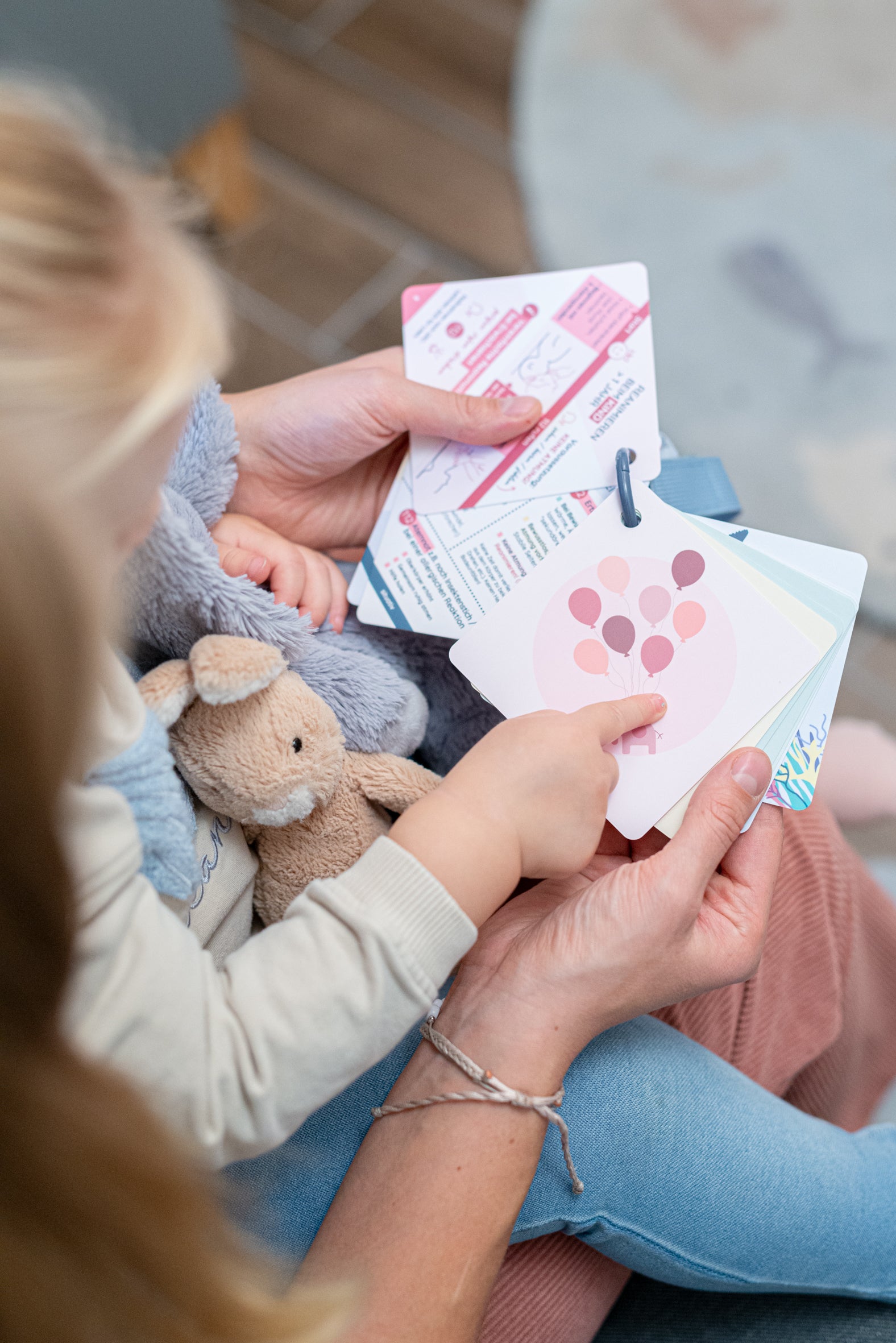 Bitte beachtet: Der Buggyplan® ist für Eltern / Bezugspersonen konzipiert, damit sie sich die Handgriffe für den Notfall einprägen können. Kinder dürfen nur unter Aufsicht von Erwachsenen damit spielen. Der Ring ist kein Beißring und die Karten sollten nicht in den Mund genommen werden.